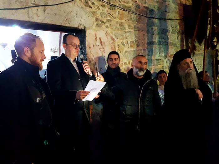 „Ово је борба за наше претке, за очување њихових завештања, за нас и за наше потомство. Ми ћемо се борити и на подручју права одавде до зелених столица Брисела и Стразбура. Добили смо, већ, велику подршку од људи којима је стало до права и правде, до цивилизацијских вриједности, од свих оних којима је, нарочито, стало до слободе вјере, а слобода вјере је основно човјеково право у које не смије нико да дира. То је очни живац сваког народа, а посебно српског“, казао је Преосвећени Епископ, најављујући обраћање Дамјана Ћулафића, члана Правног савјета Епархије будимљанско-никшићке.