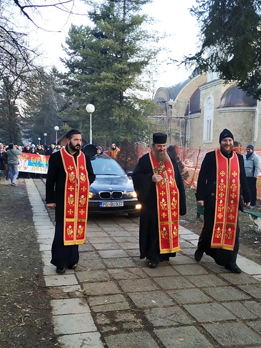 „Величанствена је ова ваша борба, борба свих нас заједно који се окупљамо око Престола Божјег, око наших светиња, штитећи завештања наших предака да оно што је Божје, Богу посвећено и Цркви за молитву и службу, да наше светиње које су наши преци, међу њима велики жупан Првослав, посвећивали Богу за своју душу и за вјечно спасење, да могу бити предате било коме другом“, казао је Владика Јоаникије.