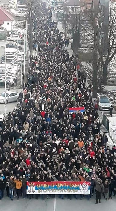 У молитвеном ходу за одбрану светиња, а против насилно усвојеног тзв. Закона о слободи вјероисповјести у Црној Гори, у четвртак, 23. јануара 2020. Беранци су се окупили, као и претходних вечери, у импозантном броју.