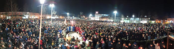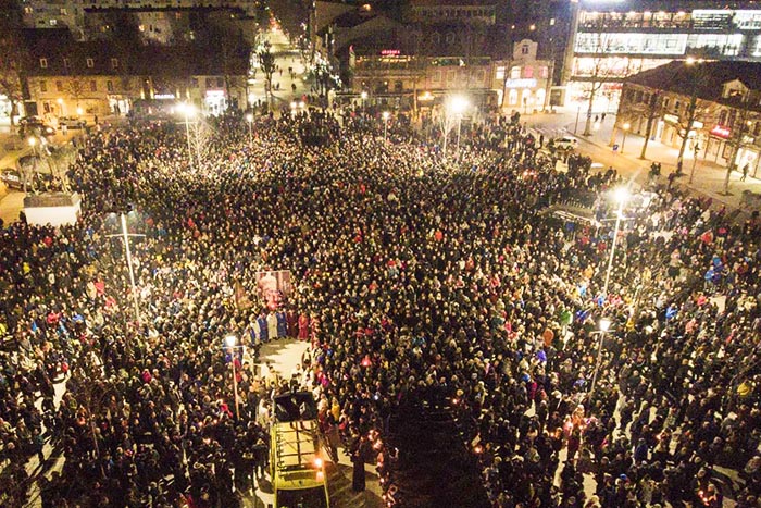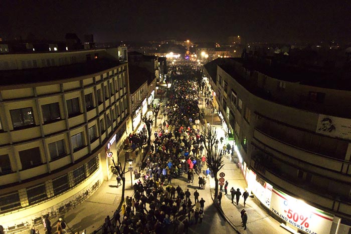 Литију је предводило бројно свештенство, а вјерни народ је и ове вечери, протествовао на миран, хришћански и достојанствен начин, пјевајући духовне пјесме, узносећи молитве, носећи у рукама црквене барјаке, иконе и свијеће.