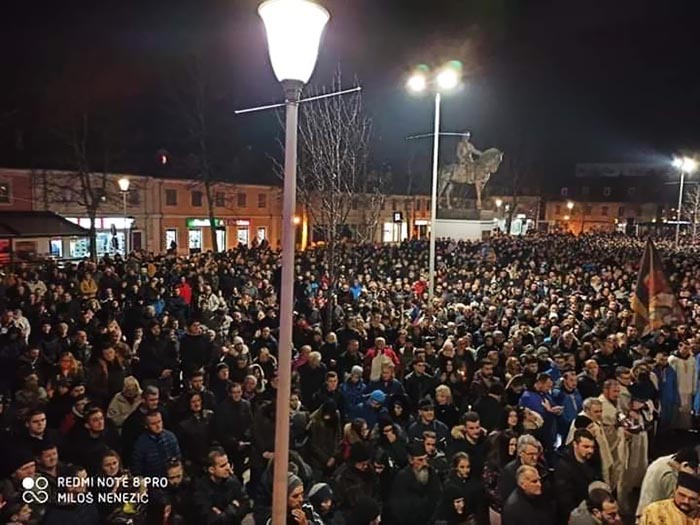 Након Молебана Пресветој Богородици, који је, у четвртак 30. јануара 2020. године служен у никшићком Саборном храму, свенародна литија, у којој је, како се процјењује, учествовало око 30 хиљада вјерника, прошла је кроз град Никшић, у знак протеста против неуставног закона о слободи вјероисповијести у Црној Гори.