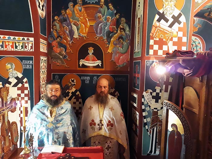 Освештан је и преломљен славски колач поводом имендана мати Анастасије.