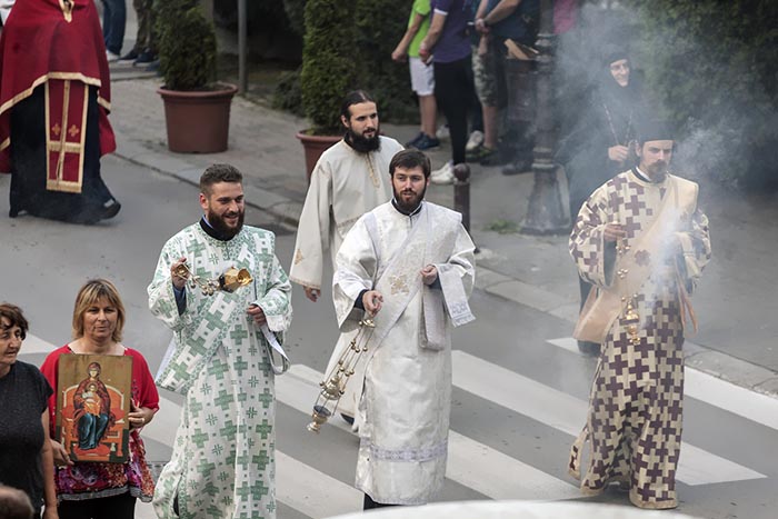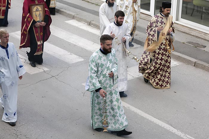 Овај ход улицама вашег дивног града, подсјећа ме на ход цијеле Цркве Христове кроз простор и вријеме. Ове улице вашег града подсјећају нас на све широке авеније и уске сокаке живота, и појединца и народа, свих заједно и појединачно, на све друге путање што представља да је животни пут и борба једно дуго корачање, хођење напријед. Ми ходисмо заједно, како нас уче апостоли, који су заједно испуњавали једно дјело, у једној вјери, мудрости да идемо заједно. Међутим, такође, се подсјећамо да је ход Цркве као и ход сваког од нас појединачно у тој Цркви једно сложено хођење, сложен подвиг, разноврстан. Некима у том ходу вјетар дува у леђа, па им помаже у хођењу, код неких је супротно. Неке свјетлост обасјава у том ходу, неки добијају своје вијенце већ сада, у овом животу, неки и лажне. Неки и праве, а неки привремене. Неки кроз овај ход иду, већ, прослављени, а неки осрамоћени. Некима подапињу, а неке подстичу. Било како било, или нас хвалили, или срамотили, или милоспевали, или доживљавали поразе, увијек у Цркви смо свесни да је то само једна истанца у животном, историјском ходу. Пут је много дужи, а треба стићи. Ходећи, ми се користимо мудрошћу Христовом и искуством Његових апостола и других његових следбеника“, бесједио је владика Атанасије.