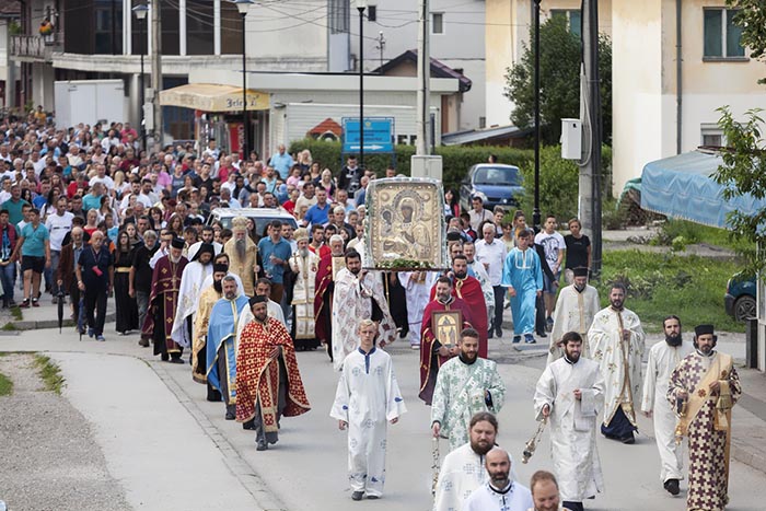 „И онда када сте срамоћени и када сте слављени, ни једно ни друго не мора бити ни права оцјена, ни права представа, ни коначна представа и оцјена, пут се наставља. Суд се такође наставља, оцјена, процјена ће доћи, а најважнија је она коју добијамо од Онога за Којег се боримо, од Господа Христа. Ево пјевали смо тропаре, ходећи улицама, оно што је најупечатљивије за све њих, и за оне који су се прославили учењем, молитвом, мучеништвом, за све који су свој труд поднијели за Христа. И ми ово што чинимо за Христа чинимо, и Њему ћемо најприје дати одговор, и онда цијелој цркви Христовој. Нека нам је срећно хођење кроз простор и вријеме, и да се обрадујемо сви заједно у Царству Небеском код Христа, заједно са свима прослављеним Његовим апостолима и свима Светима”, поручио је Епископ Атанасије.