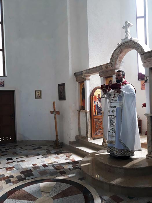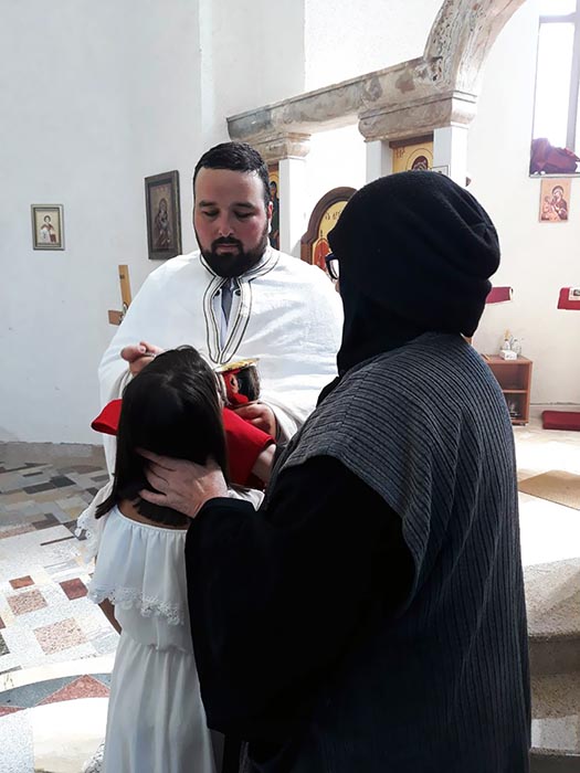12.07.2018. Вијести На Петровдан, 12. јула 2018, у храму Светог Јевстатија Српског служена је Света литургија. Литургију је служио јеромонах Сава Вукајловић. У току литургије троје дјеце примило је Свету тајну крштења.