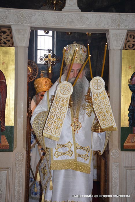 „То је могао да каже краљ Никола, крштени владар, који је градио стотине светиња, и обнављао у своје вријеме са Митрополитом Митрофаном баном. Али не могу то да кажу они они који су пљунули на часни крст, који су следбеници оних што су братском крвљу обагрили Црну Гору, побили преко сто двадесет најбољих свештеника, што су убили Митрополита црногорско-приморског Јоаникија, који су на правди Бога судили Митрополиту Арсенију Брадваревићу и осудили га на једанаест година затвора за наводну антидржавну дјелатност, следбеници оних који су се одрекли Бога, који у Бога не вјерују“, нагласио је Митрополит црногорско-приморски.
