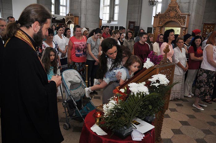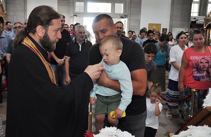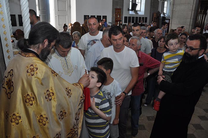 Током Литургије вјерници су приступали да се поклоне и цјеливају честицу моштију великог Светитеља и исцјелитеља Нектарија Егинског. Помазивао их је освећеним уљем из манастира Светог Нектарија са Егине протојереј-ставрофор Слободан Јокић, архијерејски намјесник никшићки, чијим трудом и љубављу се, уз помоћ бројних приложника и добротвора, у Никшићу подиже Црквено-омладински центар са параклисом Светог Нектарија.