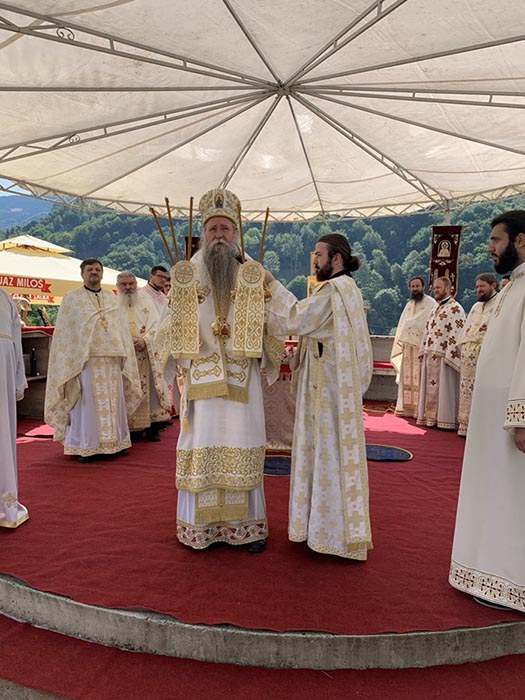 Свету Архијерејску Литургију, у цркви Светих Кирика и Јулите, која је подигнута у спомен на око 500 дјеце, жена и стараца Велике и околине, које су 28. јула 1944. на најмонструознији начин убили припадници фашистичке „Принц Еуген“ и „Скендербег“ дивизије, потпомогнути балистичко-вулнетарским добровољцима из Космета, Бихора, Плава и Гусиња, служили су Њихова Преосвештенства Епископи будимљанско-никшићки Г. Јоаникије и пакрачко-славонски Г. Јован, уз саслужење бројног свештенства и свештеномонаштва Митрополије црногорско-приморске, Епархија будимљанско-никшићке и славонске.
