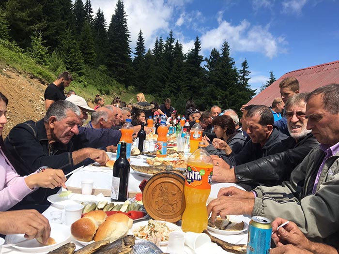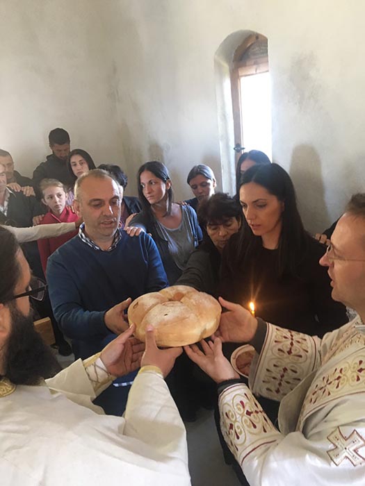 Освештан је и преломљен славски колач у славу Светих апостола Петра и Павла. Заједничарење је настављено уз трпезу братске љубави, коју су припремили браћа ипођакон др Дарко и Дејан Микић, а обавезу за наредну годину преузели су браћа Зоран и Радуле Живаљевић.
