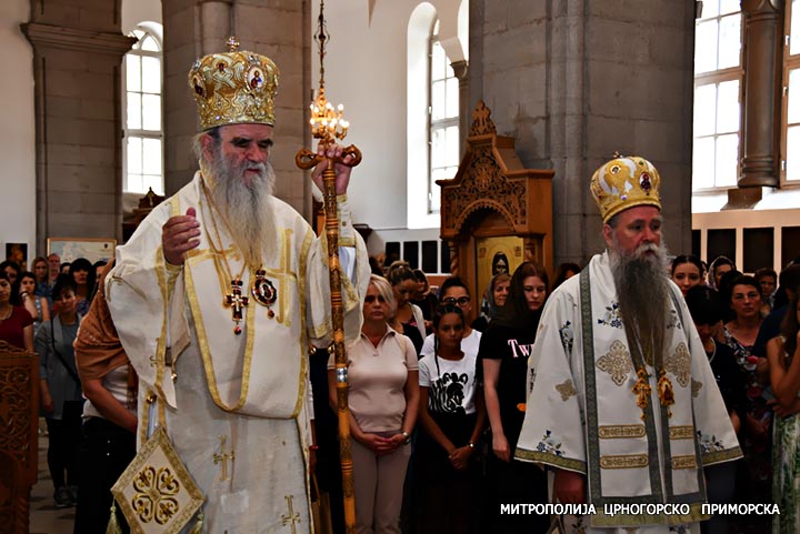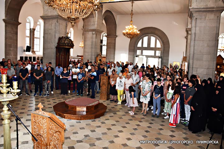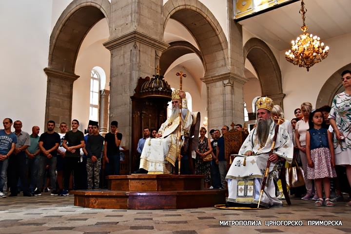 Након прочитаног Јеванђеља, ријечју надахнуте архипастирске бесједе обратио се Високопреосвећени Митрополит Амфилохије, који је казао да је призив свакога који се крсти у име Оца и Сина и Светог Духа да на заповјестима Христовим гради свој живот, живот својих народа, да се гради све што је часно и честито.