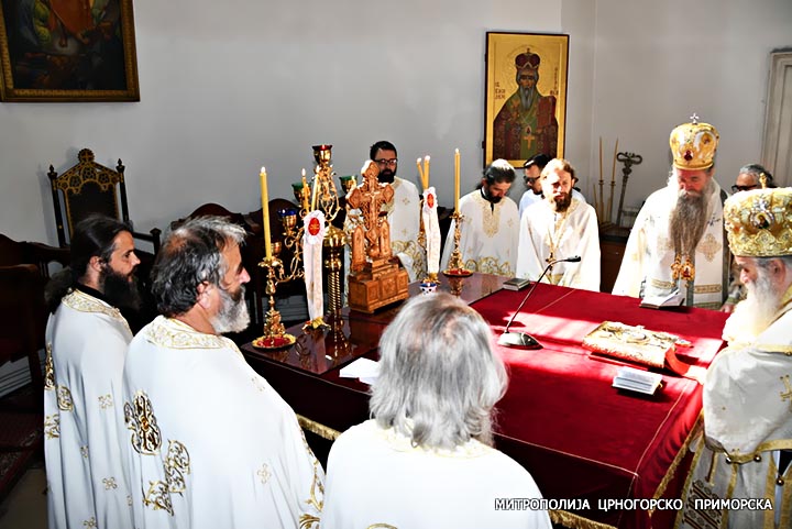 „Живјели су у древна времена, у 4. вијеку, у вријеме гоњења Цркве Божје и истинске вјере, још страшније, да не кажем, од овога ако је могуће да буде страшније од овог гоњења Цркве Христове у наше вријеме. Бранили су праву, истинску вјеру, то је било вријеме оне јереси које је осуђено на Првом васељенском сабору 325. оног несрећног Арија, свештеника из Александрије. Жртвовали су се за ту вјеру у вријеме ондашњих царева, обезбожених, сви тројица пострадали мученички“, подсјетио је Архиепископ цетињски.