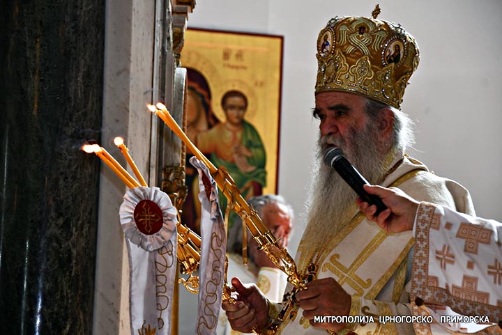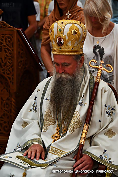 „Ови који су се обезбожили данас, нажалост, овдје у Црној Гори они кажу да ове светиње припадају њима, ономе што они називају државом, а, уствари, државу поистовјећују са собом и бранећи себе, своје интересе, темељећи на безбожништву судбину Црне Горе, а она је све утемељена на вјери у живог Бога, и све што је у њој саграђено, они кажу да светиње припадају њима. Коме њима? Ко су ти они? Своју власт и страсти поистовјећују са државом и са народом и у име Црне Горе. Које Црне Горе? То није више Црна Гора, него Монтенегро. То је нешто што је рођено не у колијевци крштења и у материнској утроби, него нешто што је рођено у идеологијама нашег времена, идеологијама братоубилаштва и богоубилаштва“.