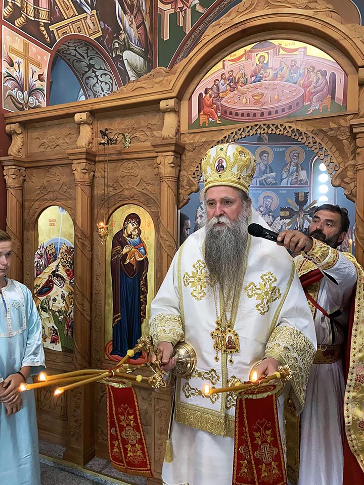 „Свака црква, сваки храм је посвећен на службу Богу, то је Божје имање, дакле, он је обиталиште славе Божје. То нарочито долази до изражаја када се сабере народ Божји у храм, ту се врши служба Божја, ту се хранимо Небеским хљебом, примамо Светињу над светињама. Та се Светиња настањује у нашим срцима, а то је сами Господ Исус Христос, постајемо христоносци, богоносци и духоносци. Када се сабирамо у храм, ми смо тада јаки, добијамо Божју мудрост, знање, снагу и здравље“, истакао је Владика.