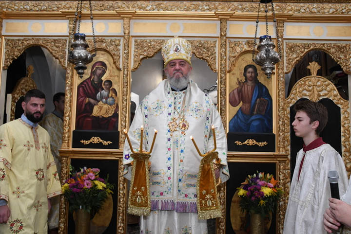Затим је владика Јоаникије поздравио Његову екселенцију Владислава Масленикова, амбасадора Руске Федерације у Црној Гори, истичући да његово присуство овај празник чини још радоснијим.