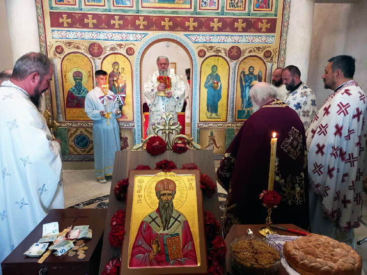 По одслуженој Литургији преломљен је славски колач и освештано жито. Домаћини славе били су Миљан Алексић и Жељко Лучић.