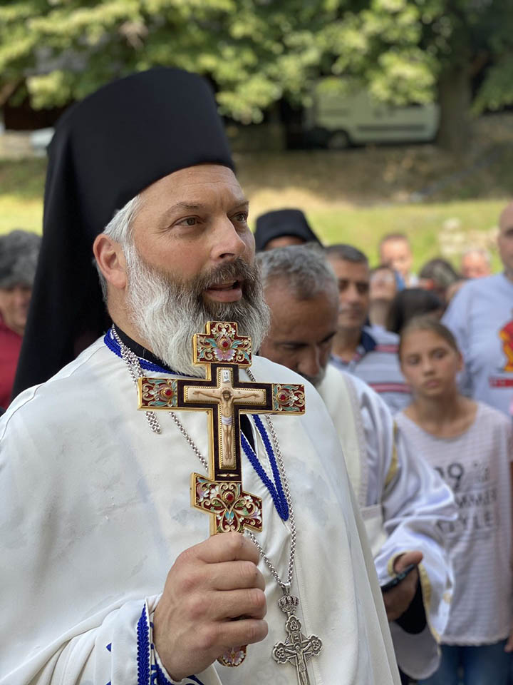 „Да, најприје, изразим благодарност Владици Јоаникију и архимандриту Методију, игуману царске лавре хиландарске, што су дозволили да у Црној Гори буде копија хиландарске иконе Мајке Божје Тројеручице. То не дају свакоме, али ономе коме дају не значи да смо најбољи, него можда да нам је то најпотребније. Велика благодарност и слузи Божјем Милошу и Достани Пантовић из Чикага, који су ову икону приложили за здравље и спасење, и за покој душе њиховог сина Томислава, за спасење ове свештене обитељи и житеља овог града“.