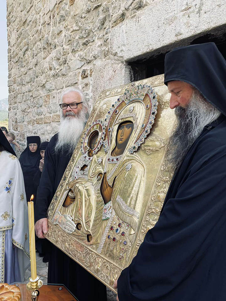 Литургијском сабрању и прослављању празника Иконе Пресвете Богородице Тројеручице присуствовао је Милош Пантовић са супругом Достаном, из Чикага, приложници ове дивне иконе.