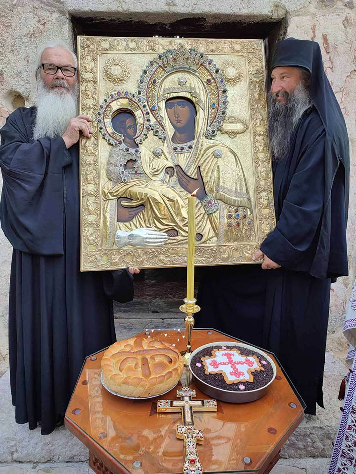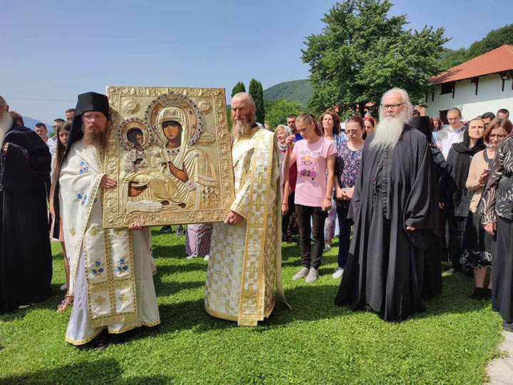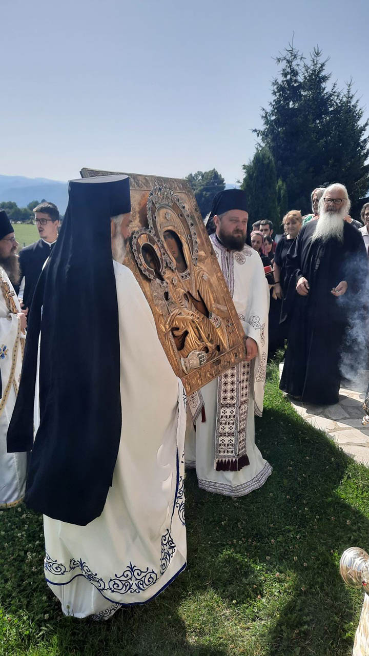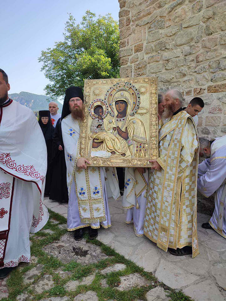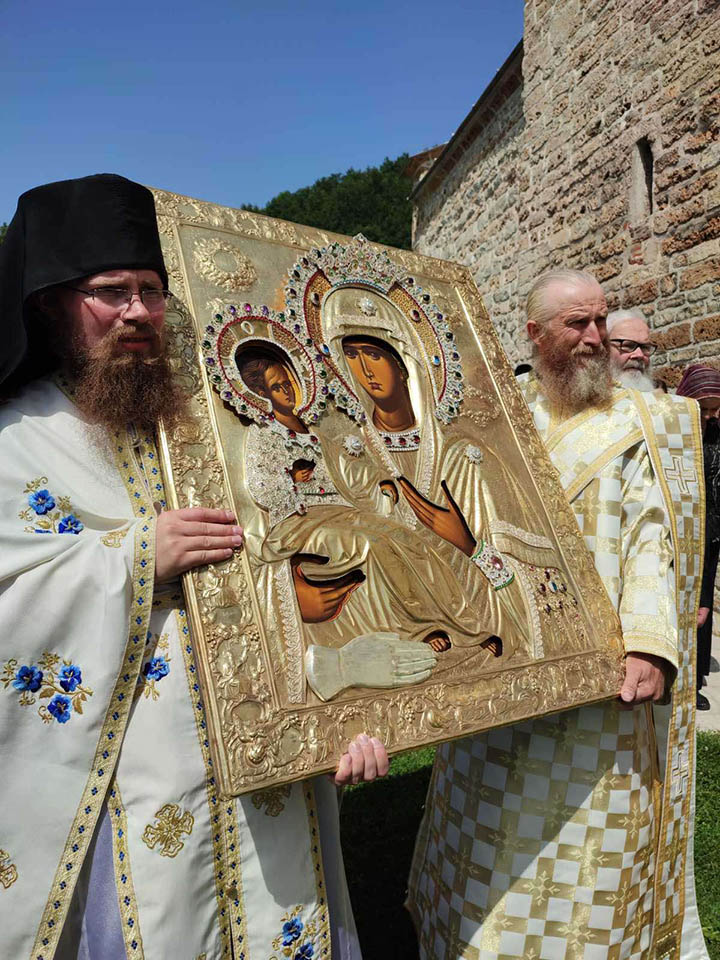 Сабраном вјерном народу, велики и дивни празник честитао је архимандрит Данило (Трпчевски), игуман манастира Ђурђеви Ступови, који је навео да кад празнујемо празник икона Божјих, празник иконе Пресвете Богородице, ми празнујемо саму Богородицу, Мајку Господа нашег Исуса Христа.