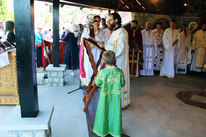 Свету архијерејску Литургију, са почетком у 9.00 часова, у летњој капели у централном делу манастирске порте, служили су Преосвећена господа Епископи милешевски Атанасије и будимљанско-никшићки Методије уз саслужење свештеника и свештеномонаха више Епархија Српске Православне Цркве. Својим појањем Божанску Литургију су увеличали чланови црквеног хора из Подгорице под руководством мр Људмиле Радовић.