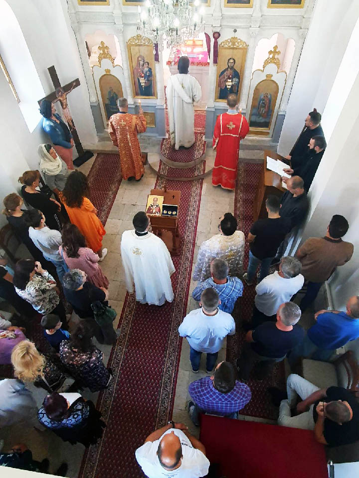 Евхаристијским сабрањем началствовао је јереј Тадија Никчевић, клирик епархије зворничко- тузланске, а саслуживали су му надлежни парох протојереј Мирко Вукотић и јерођакон Јаков Нинковић. Литургијско појање народа предводила је кочанска пјевница са чтецима Милошем Јакшићем и Милошем Ненезићем. Велики број сабраног народа причестио се Светим Тајнама а након отпуста о. Тадија се обратио народу са кратком бесједом. У бесједи се осврнуо на перикопу из Мт 8: 5-13, у којој се говори о исцељењу капетановог слуге. Он је истакао да вјера капетанова треба да нам буде узор, и да све што можемо треба сами да исцјељујемо код наших ближњих, користећи лијепу ријеч, пажњу, загрљај, братску љубав. А све оно што превазилази наше снаге, треба попут капетана да предамо Господу у руке и он ће се за остало побринути.