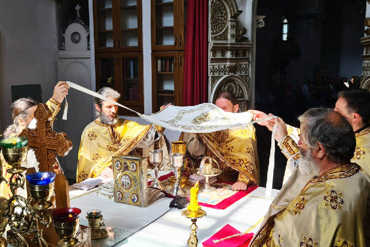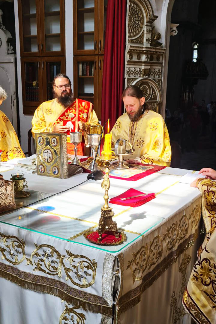 У четврту недјељу по Педесетници, на празник Преподобног Сампсона Странопримца, 10. јула 2022. света Литургија је служена у Саборном храму Светог Василија Острошког у Никшићу.