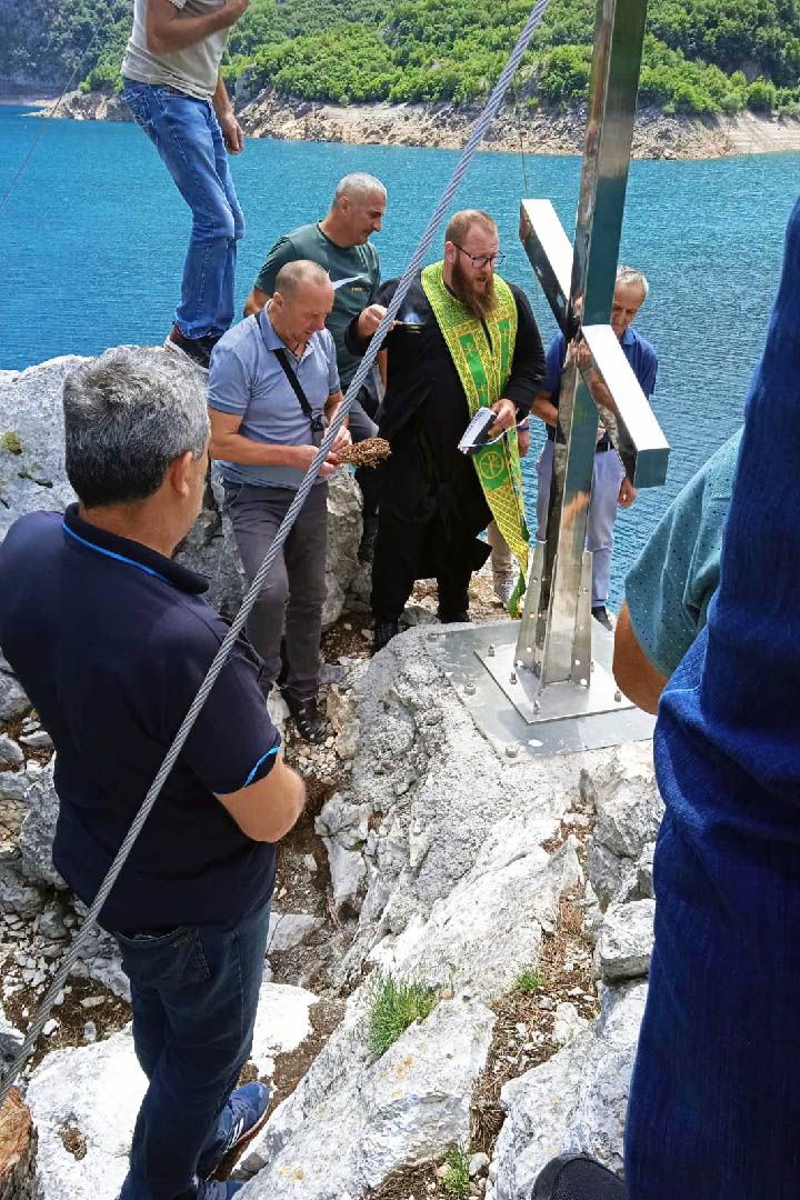 По одслуженој Литургији, у 13 часова, надлежни парох, о. Лука је заједно са вјерним народом Пиве, бродом дошао до усамљеног острва на Пивском језеру, које се налази у Великој Градини, село Мратиње. Ту је ових дана подигнуто крсно знамење, попут оног које је, недавно, постављено у мјесту Будањ. Свештеник Лука Цицмил је обавио освећење крста и пригодном бесједом се обратио сабранима: