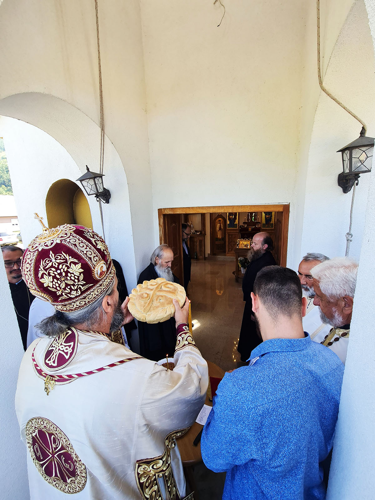 Након свете службе Божје, Владика је освештао и преломио славски колач.