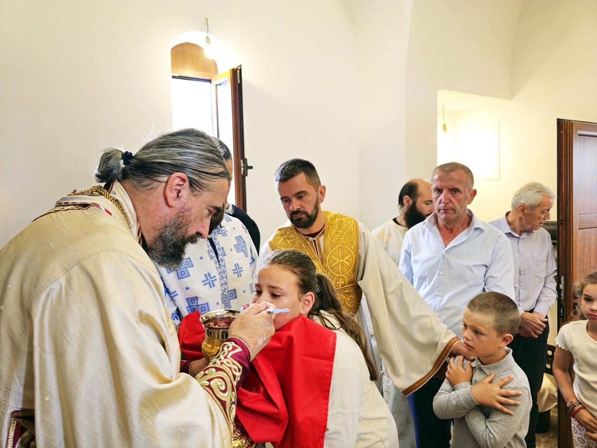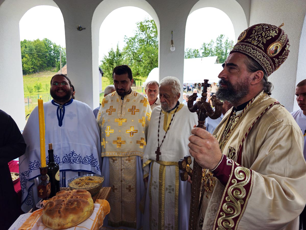 „Нека вам је на здравље и на спасење Свето причешће и ово сабрање. Диван је и благословен овај данашњи дан, који много говори и много даје. Велике нам је дарове Господ дао, дао нам је, прво, да будемо живи, увео нас је у матицу живота, дао нам је да будемо православни хришћани, Срби, потомци славних и великих људи, племенитих јунака и предака наших. А дао нам, поред свих тих дарова, велику одговорност, не само дар да се овдје, на овом мјесту, подигне црква за рекордно кратко вријеме. Не памтим да се некад неки храм, не само овако брзо подигао, у брзини није неки квалитет и успјех, него да је у том времену и временском оквиру кратком у којем је подигнут, све било тихо, благословено налик Пресветој Богородици, ненаметљиво, непретенциозно, увијек дајући другога у први план, дајући себе на жртву, служећи Господу и Пресветој Богородици“, бесједио је Његово Високопреосвештенство.