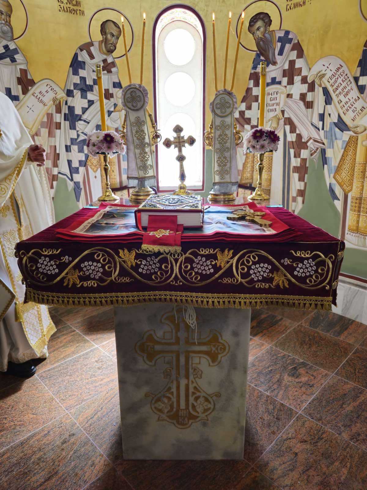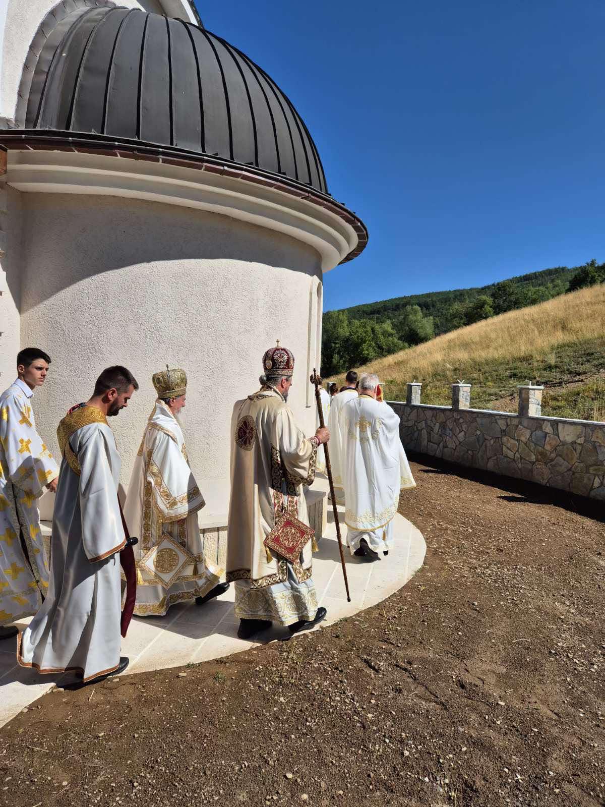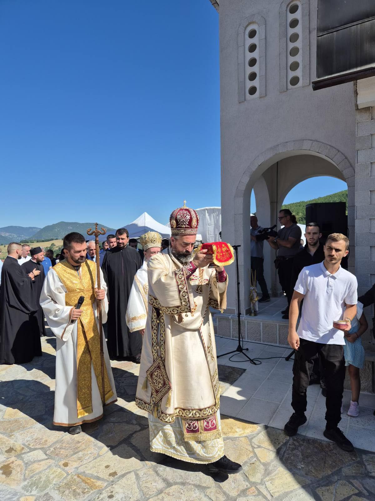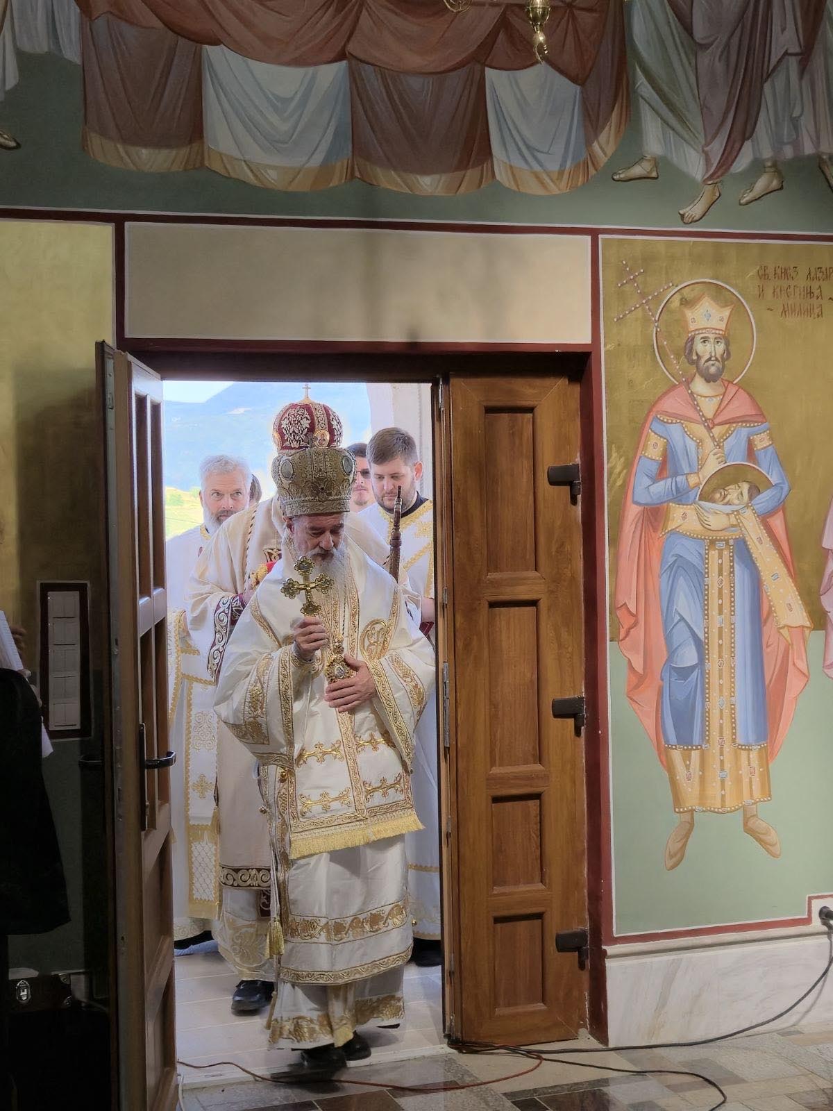 Храм су освештали, а потом у њему одслужили Свету Архијерејску Литургију Његово Високопреосвештенство Архиепископ и Митрополит милешевски Г. Атанасије и Његово Високопреосвештенство Митрополит будимљанско-никшићки Г. Методије.