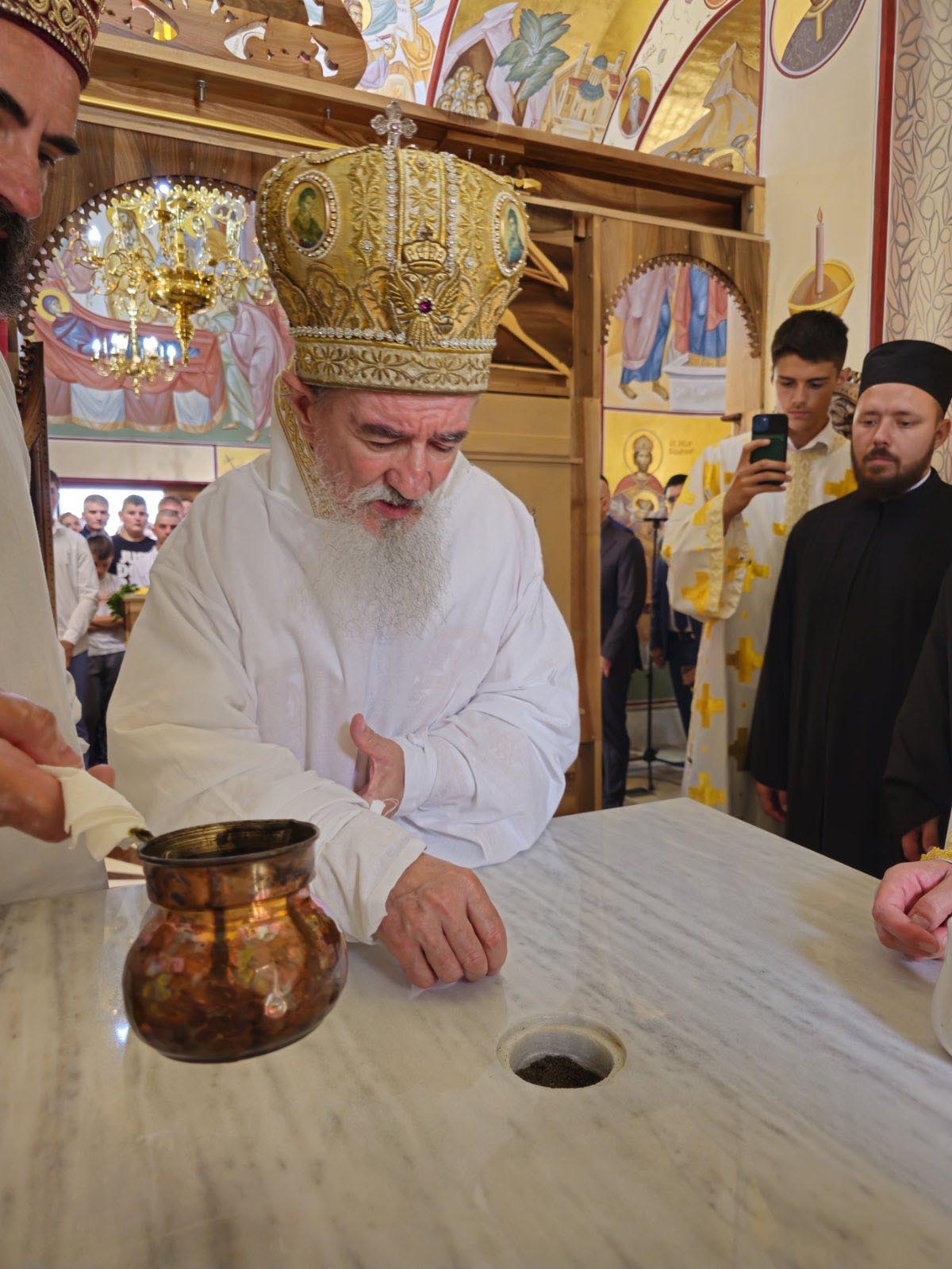 Након прочитаног светог Јеванђеља литургијском проповједи обратио се Високопреосвећени Митрополит Атанасије, честитајући данашње сабрање и чин освећења храма.