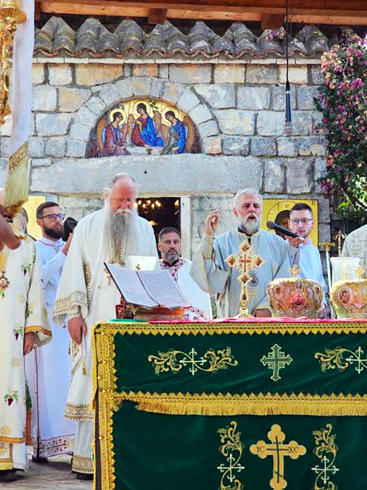 Свету архијерејску литургију у овој древној светињи јутрос је служио Његово високопреосвештенство Архиепископ цетињски Митрополит црногорско-приморски г. Јоаникије са Његовим високопреосвештенством Архиепископом диселдорфско-берлинским Митрополитом Њемачким г. Григоријем, Његовим преосвештенством Епископом пакрачко-славонским г. Јованом, Његовим преосвештенством Епископом диоклијским г. Пајсијем и свештенством и свештеномонаштвом више епархија Српске Православне Цркве.