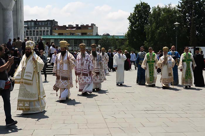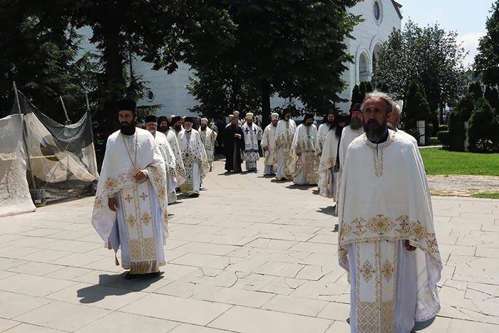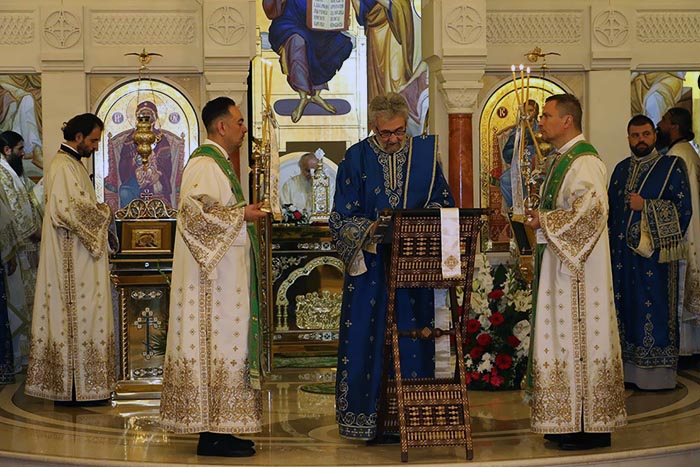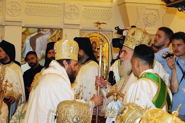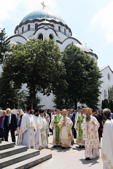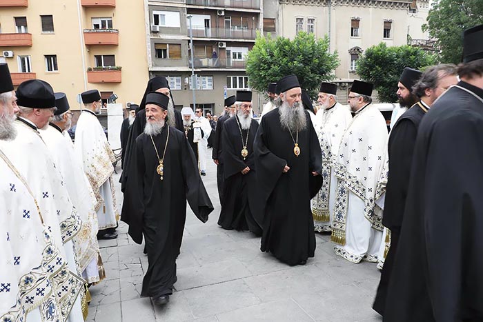 Предстојатељу Српске Православне Цркве на божанској Литургији саслуживали су: Високопреосвећени Митрополит загребачко-љубљански Порфирије; и Преосвећена господа Епископи: бачки Иринеј; британско-скандинавски Доситеј; врањски Пахомије; шумадијски Јован; браничевски Игњатије; зворничко-тузлански Фотије; милешевски Атанасије; будимљанско-никшићки Јоаникије; горњокарловачки Герасим; бихаћко-петровачки Сергије; нишки Арсеније; далматински Никодим; осечко-пољски и барањски Херувим; викарни Епископи: моравички Антоније и буеносајрески и јужно-централноамерички Кирило, као и изабрана господа Епископи: захумско-херцеговачки Димитрије; мохачки Исихије и диоклијски Методије.