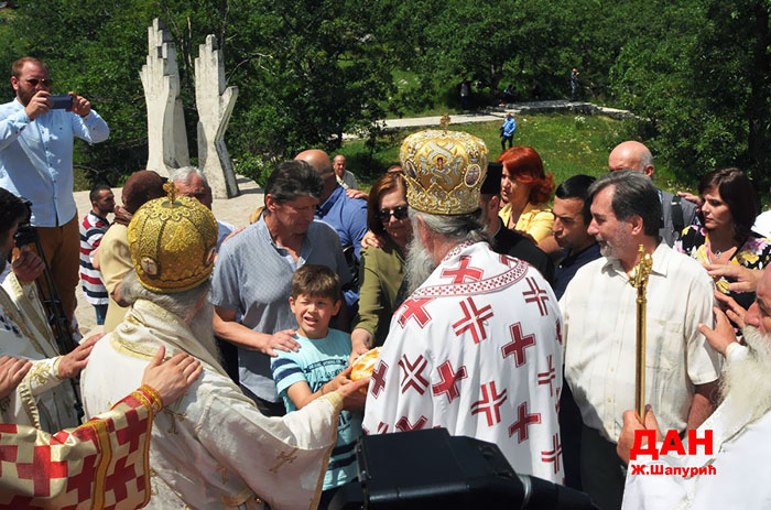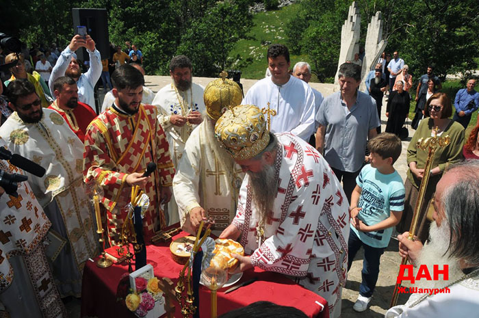 Послије причешћа вјерног народа Епископ будимљанско-никшићки Јоаникије је заблагодарио Митрополиту Амфилохију што не заборавља овај свети крај и окупља вјерни народ око ових светих мученика.