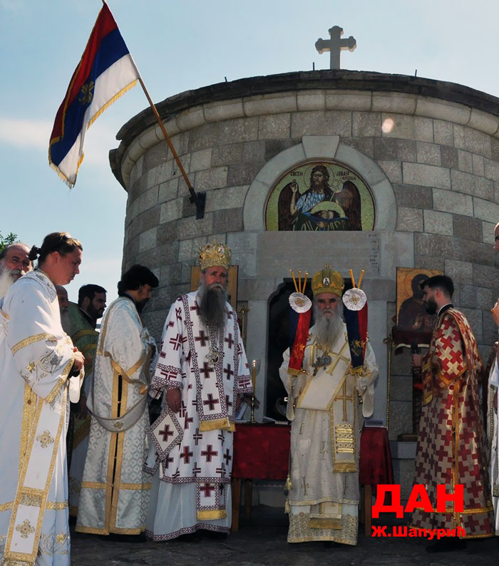 „Три страшна знамења прослављамо у овој доли пуној бола, мјесту гдје су поклана дјеца, жене и старци. Није то давно било, то је јуче било. Ово је мјесто гдје прослављамо Светог Јована Крститеља, који је такође жртвован, одсјечена му је глава од безбожног Ирода и Иродијаде. Ево и црква Светог Петра згажена и понижена у овој доли васкрсава у нади да ће кроз њу васкрснути и она на Ловћену“, казао је Митрополит црногорско-приморски.