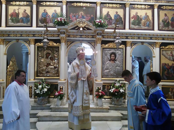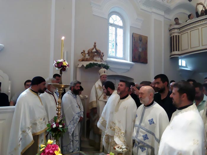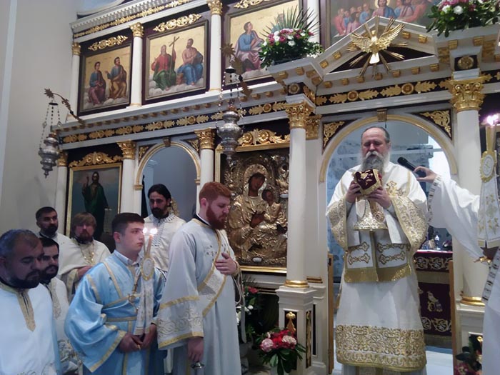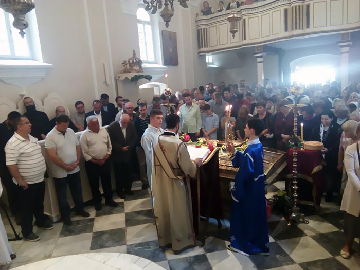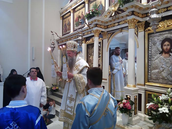 Након причешћа Владика Јоаникије је освештао и пререзао славски колач и пастирском бесједом се обратио вјерном народу.