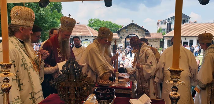 Поводом Видовдана у манастиру Грачаница Свету архијерејску литургију служио је Његово високопреосештенство Архиепископ цетињски Митрополит црногорско-приморски г. Амфилохије уз саслужење преосвећене господе епископа: рашко-призренског и косовско-метохијског Теодосија, будимљанско-никшићког Јоаникија, милешевског Атанасија, пакрачко-славонског Јована, буеносаиреско-јужноцентралноамеричког Кирила, умировљеног захумско-хереговачког Атанасија и великог броја свештенства.