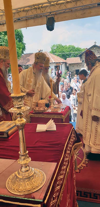 Након Литургије Епископ рашко-призренски и косовско-метохијски г. Теодосије је честитајући празник захвалио својој браћи архијерејима који су дошли са љубављу и завјетном жртвом на Косово да заједно прославимо Видовдан: