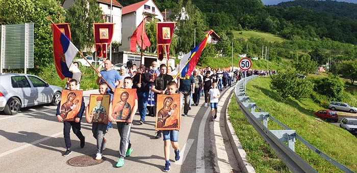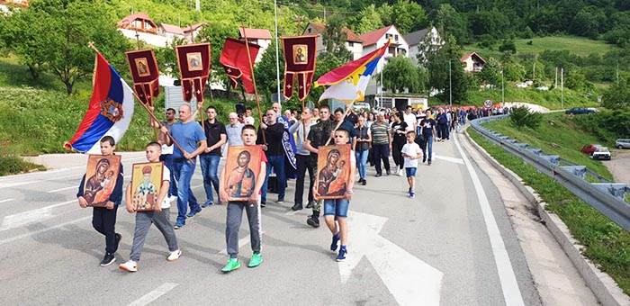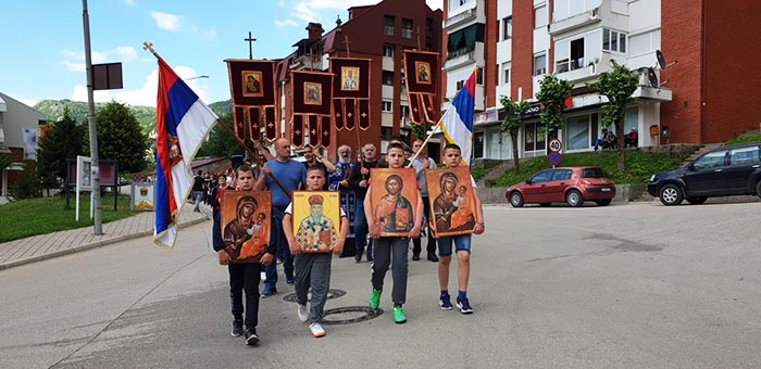 Након одслуженог Молебана, литија вјерног народа прошла је кроз Плужине.