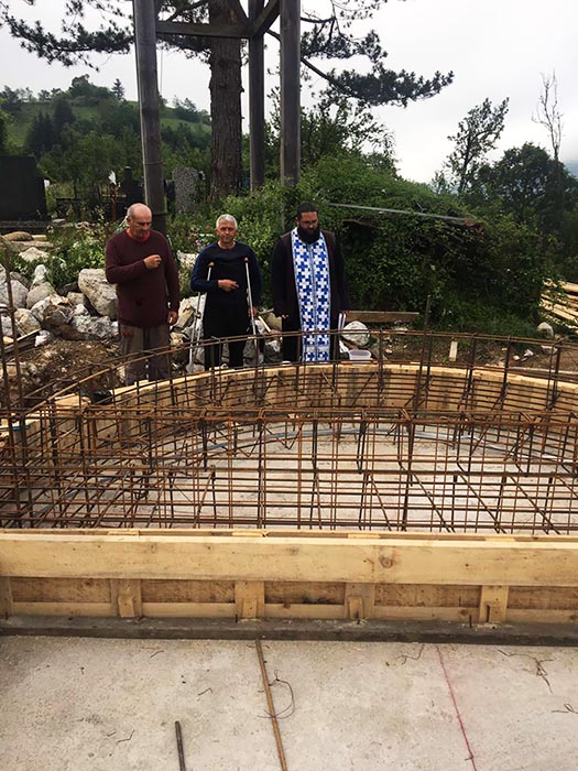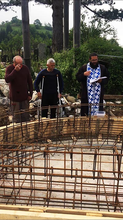 Надлежни парох, јереј хаџи Бојан Радуновић обишао је, поменути локалитет и прочитао молитве призивања благдоати и дара Светог Духа у почетку посла. Прошле године покушало се са реконструкцијом цркве и санирање темеља. Међутим, грађевина, по ријечима о. Бојана, није могла то поднијети и урушила се. У том догађају, трајно је повријеђен г.-дин Предраг Мијовић, предсједник Црквеног одбора, кога то није поколебало већ је и овом приликом дао свој допринос у припреми посла и изливању самих темеља.