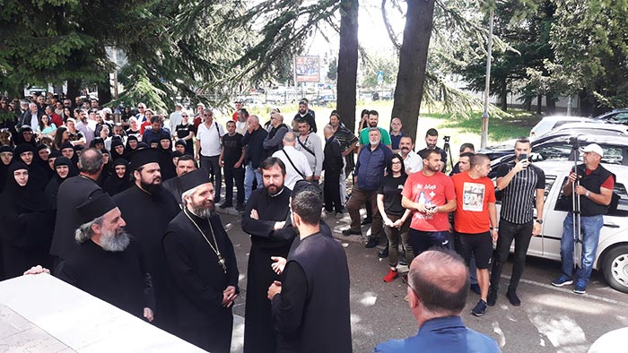 У знак подршке Владици и свештенству, испред никшићког Основног суда окупио се велики број свештеника, монаха и вјерног народа, који су њихов долазак на суђење дочекали аплаузима и поздравом: “Не дамо светиње”.