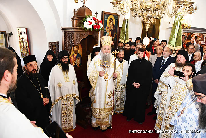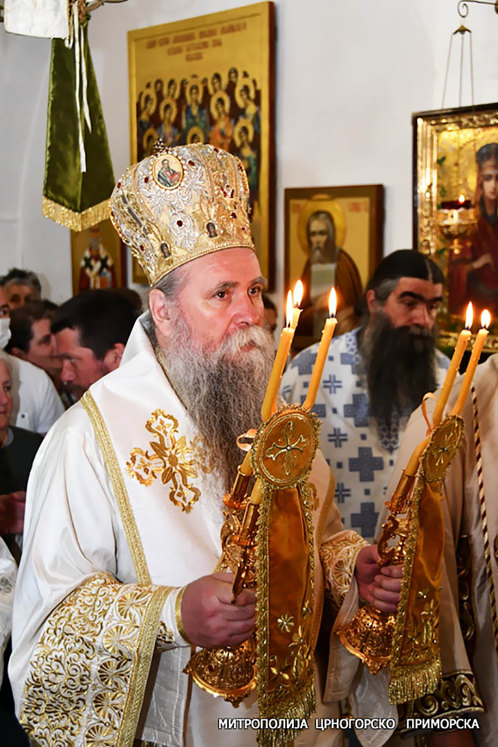 Додао је да је њему посебно данас велика радост што тачно на 22. годину од његове епископске хиротоније има част да служи у Цетињском манастиру.