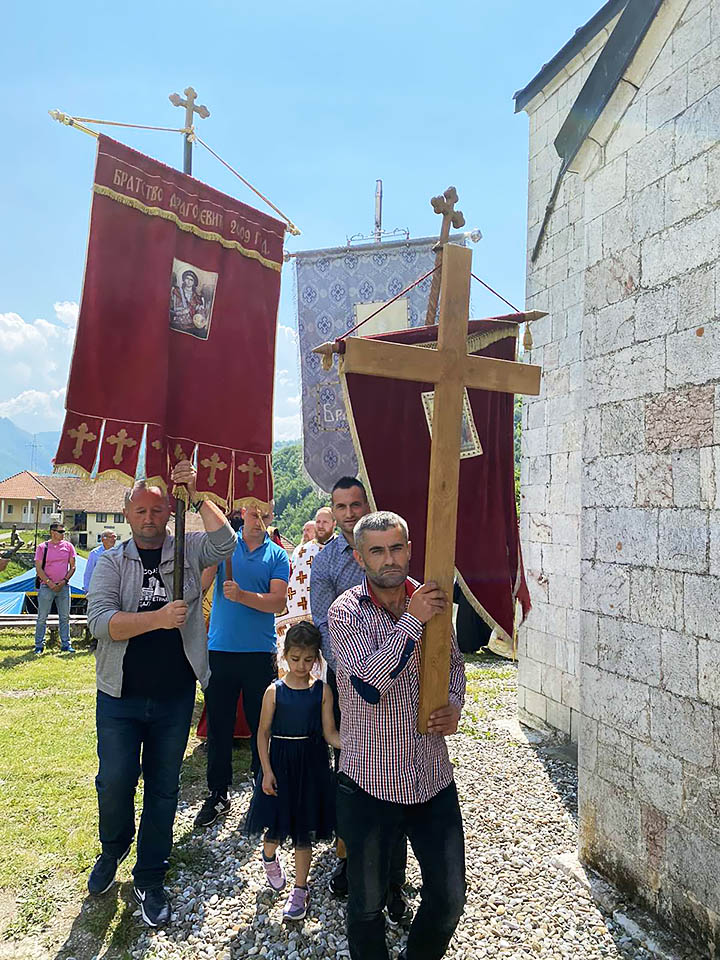 Након што су вјерници приступили Светој тајни Причешћа, празнична литија опходила је храмовно здање, а затим је благосиљан славски колач и жито.