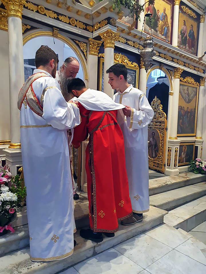 Даље је нагласио да се све то продужава и Дух Свети непрестано излива дарове на живе боголике личности сабране у Цркви Божјој на Светој служби око Христа Господа, око Његовог Светога престола, које Он храни небеским Хљебом да живе новим животом: