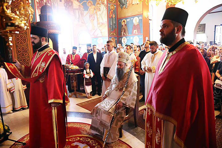 Ја сам заиста данас испуњен изобилном радошћу што сам овде са вама у Сремчици и сигуран сам да ћемо се још много пута виђати и овде и на другим местима. Хвала свештеницима који су приредили ове околности да можемо да служимо дивну Литургију, хвала појцима, деци која су се сабрала, Вама који сте дошли овде. Долазите у свој храм. Ту ћете бити ојачани и оснажени али и васпитани, васпитани Јеванђељем Христовим. Доводите овде своју децу, да добију добре темеље, јер сигурно их чекају не мала искушења. Али, ако имају чврсту котву, чврст темељ, ма колико отишли далеко увек ће знати ко су и шта су имаће где да се врате и да изнова опет и опет буду обновљени.
