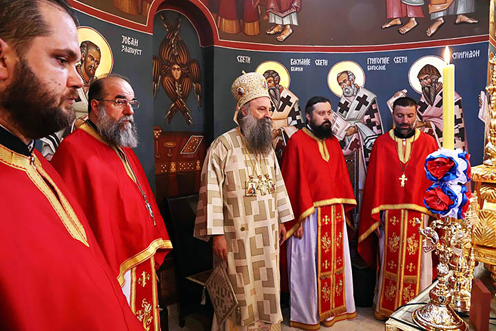 Његова Светост Патријарх српски г. Порфирије началствовао је 20. јуна 2021. године, на празник Силаска Духа Светог на Апостоле, светом архијерејском Литургијом у цркви Свете Тројице у Сремчици, уз саслужење изабраног Епископа марчанског г. Саве и свештенства Архиепископије београдско-карловачке.