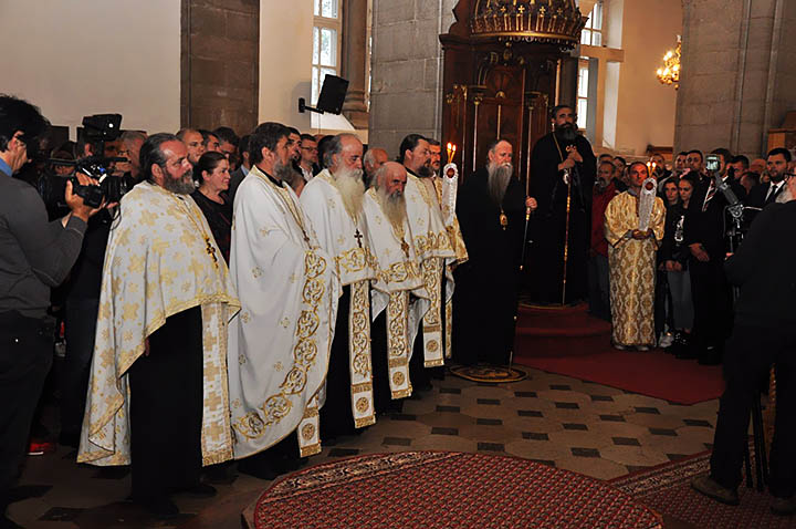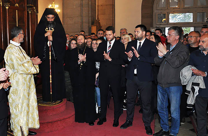 „Сабрали смо се вечерас овдје, на позив нашег свештенства, да вам саопштимо радосне вијести са засиједања Светог Архијерејског Сабора Српске православне Цркве, који је недавно завршен са врло значајним одлукама. Ви те одлуке знате и већ сте се њима обрадовали, али када је радост треба да се видимо у радости и заблагодаримо Богу, јер најузвишенији однос вјерних према Богу и сваког хришћанина је благодарење, када је радост која је Богу угодна та радост нас изграђује“, рекао је изабрани Митрополит црногорско-приморски Г. Јоаникије поздрављајући, вечерас, вјерни народ који се сабрао у великом броју у Саборном храму Светог Василија Острошког у Никшићу, да пожеле добродошлицу новом црногорско-приморском Митрополиту и Епископу будимљанско-никшићком Г. Методију.