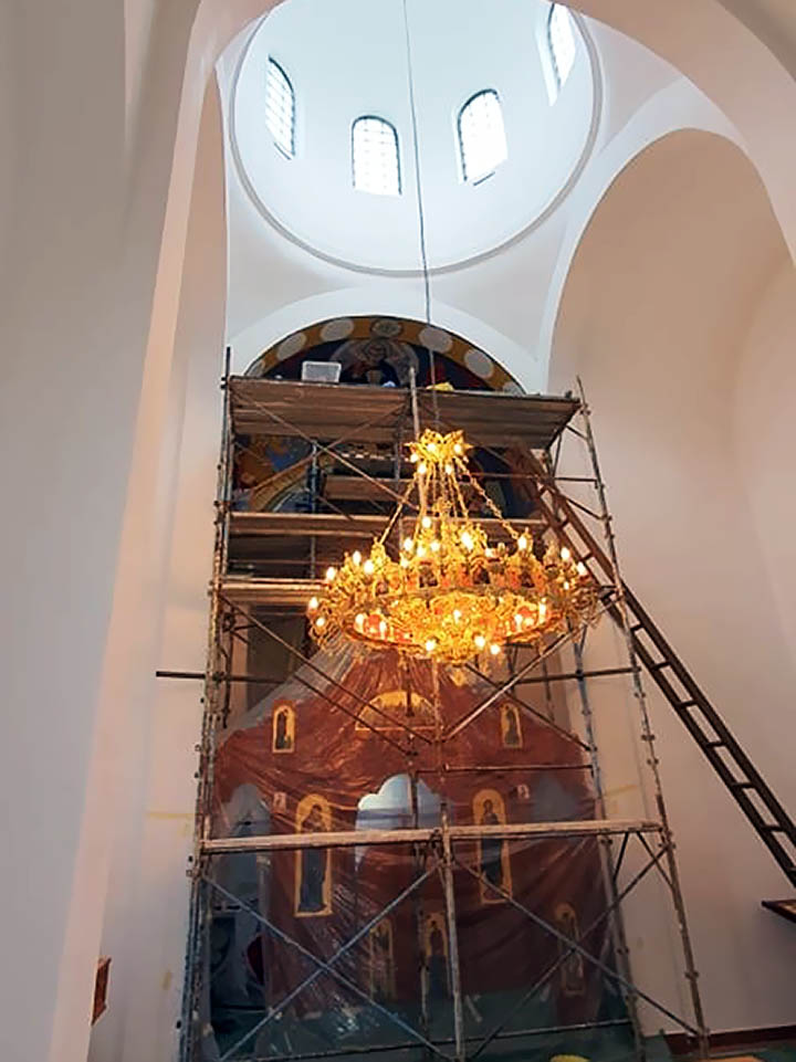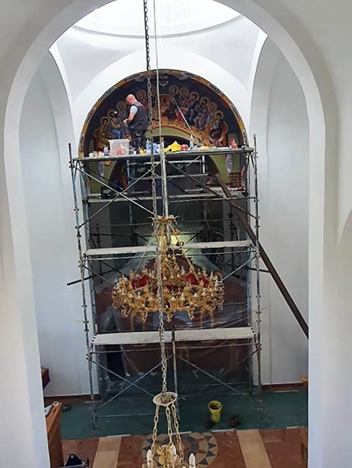 Бог је дао да ових дана почне и украшавање цркве фрескописом, који, са благословом Владике Јоаникија, изводи фрескописац Борис Маркуш.