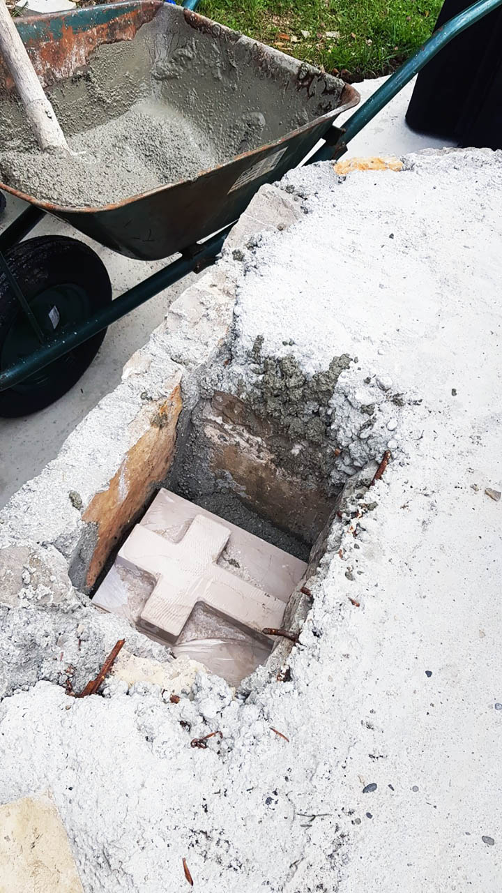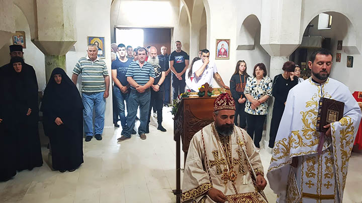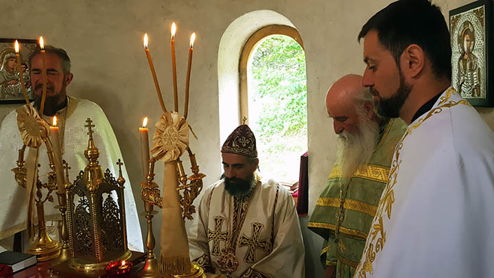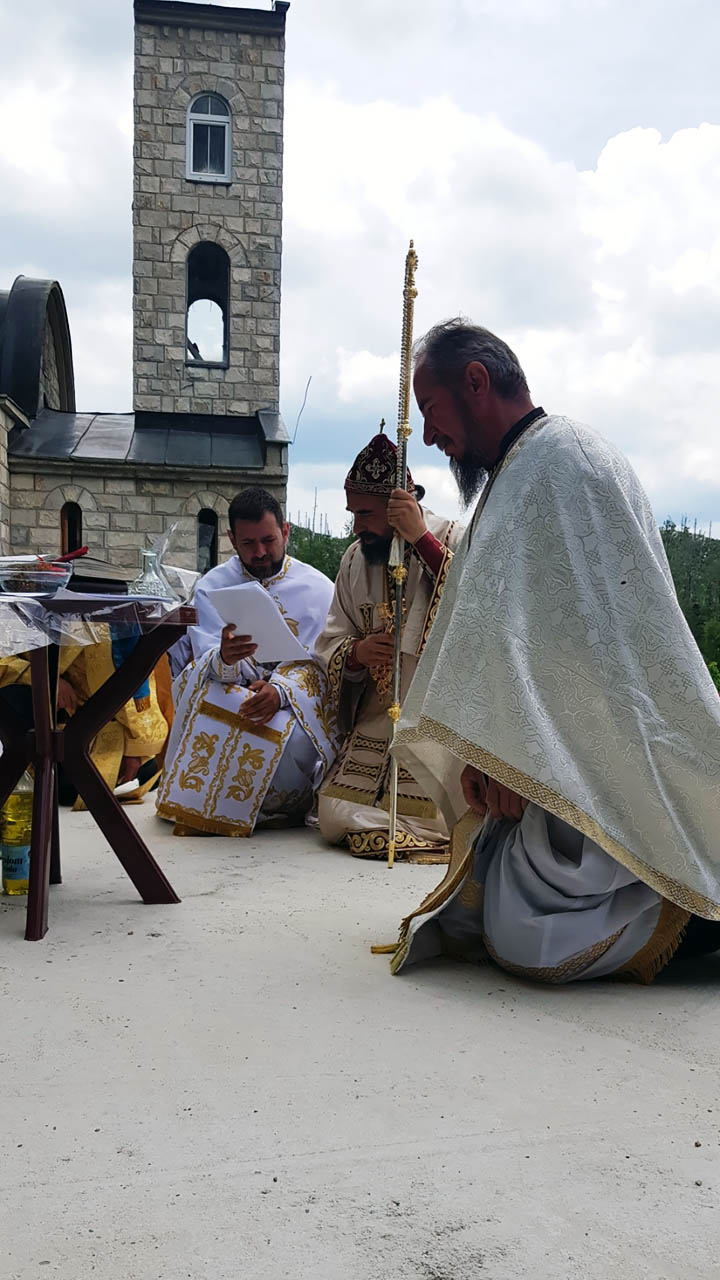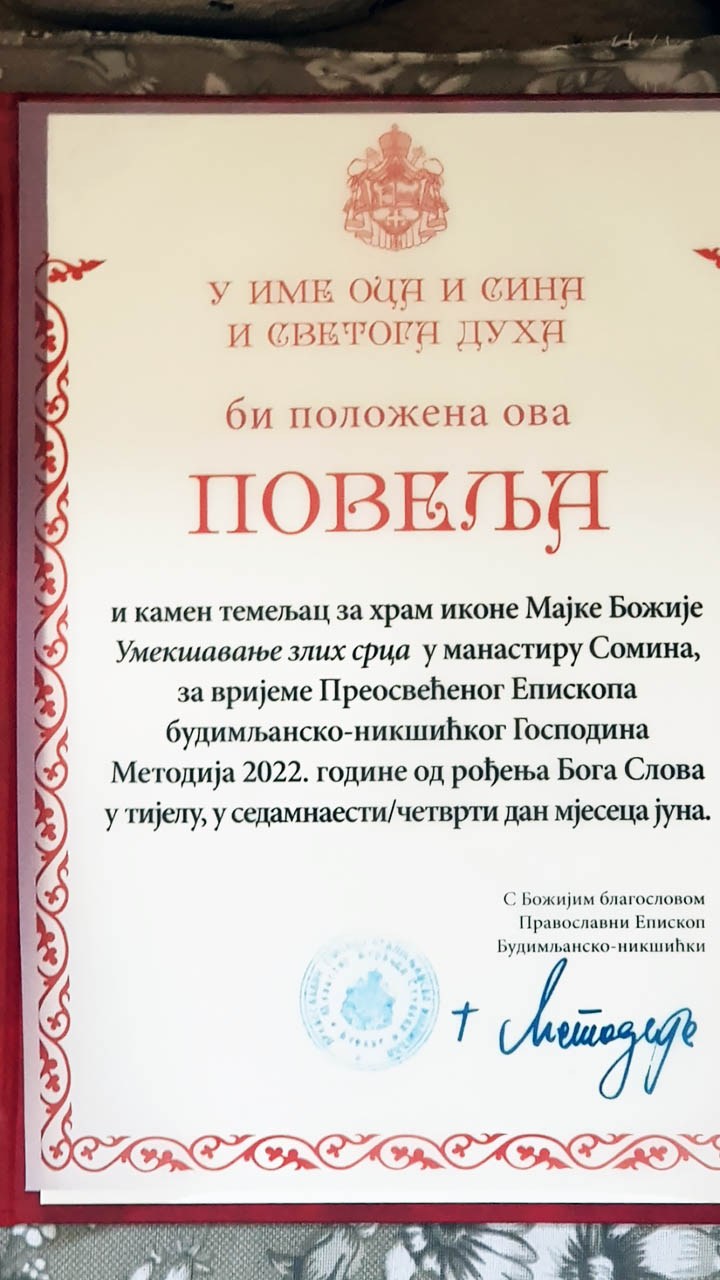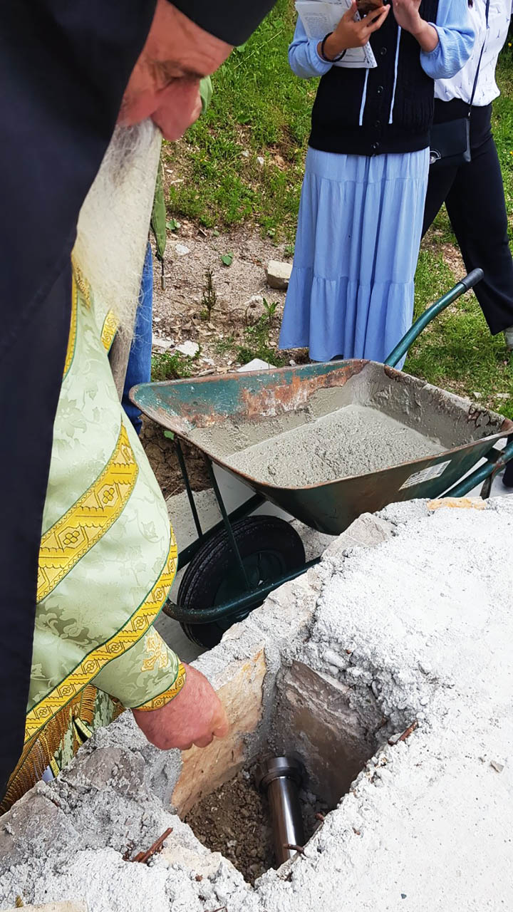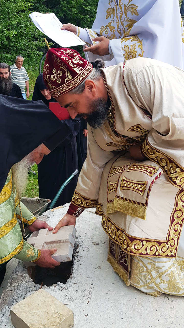 Након одслужене Литургије, Преосвећени Епископ Методије је освештао темеље новог манастирског храма, који ће бити посвећен Пресветој Богородици, тачније Њеној икони Умекшање злих срца.