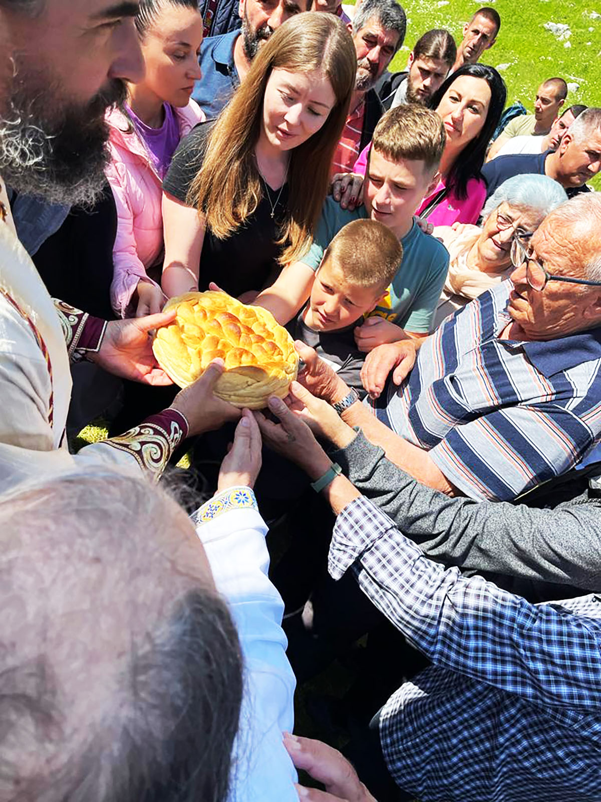 Након одслужене Литургије, освештан је и преломљен славски колач.