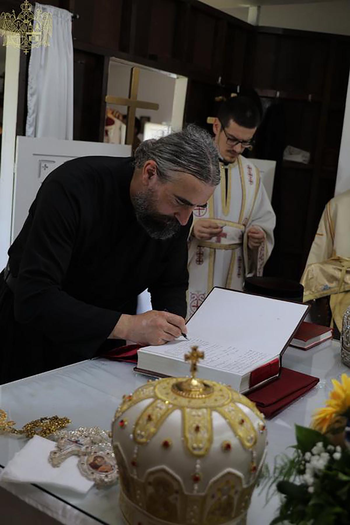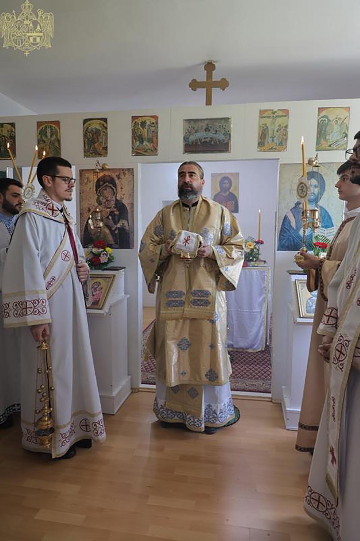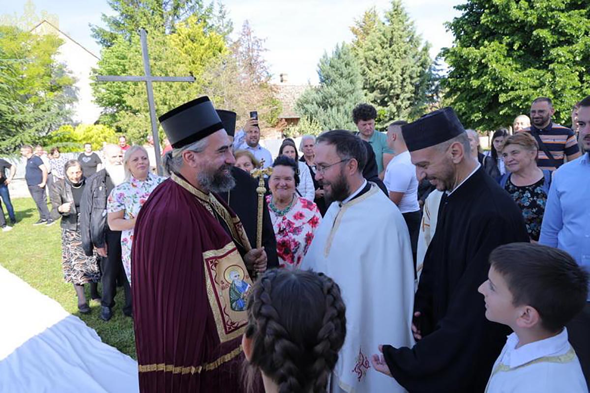 „Славимо данас дане Вазнесења после данâ Васкрсења, дане отвореног неба где се Господ вазнeо на небо и показао где је наше достојанство и где је назначење човека и људске природе, седнувши сa десне стране Бога и Оца на небесима. Ништа мање од тога, драга браћо и сестре, није призвање наше. То је оно што нам је Господ припремио, а то чувамо кроз нашу заједницу. А заједница се чува вером у Христа Васкрслога. Литургија је та где оснажујемо своју заједницу, нашу међусобну, љубавну, братску, сестринску, и где заједно са Христом спасавамо и своју душу и све оне сa којима се у животу срећемо. Једини и истински, прави наш идентитет, извире овде, из овога места, из светога храма, из светога путира, из Тела и Крви Христове. Tо је наш једини, истински, прави идентитет који учвршћује све остале наше и сродничке, и етничке, и генетске, и племенске, и сваке друге везе и заједнице. Као што тело без душе је мртво и леш, тако је и народ као телесна заједница мртав без духовне заједнице и Духа Светога и божанских енергија, којима се једино напаја у светим Тајнама, на којим је на првом месту ова тајна свете Евхаристије, свете Литургије, у којој се срећемо са Jединим и Истинитим Богом. Бог вас благословио и ту духовну заједницу вам дао, да сачувате, и поготову ове млађе генерације, да се трудите да у оној мери у којој се за Христа вежете, у тој мери и да украшавате и завршавате и довршавате свете Божје храмове које сте овде започели, али и тиме и да улепшавате и украшавате и вашу заједницу, и вашу душу, и ваше спасење.ˮ